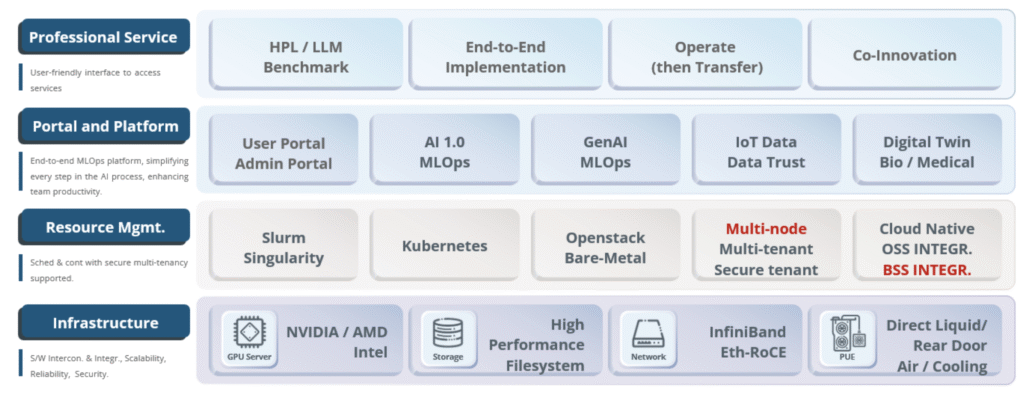 透過支援AI基礎設施的營運與維護,為系統管理系統、安全處理資料、訓練在地化 AI 模型並開發應用程式持續賦能。