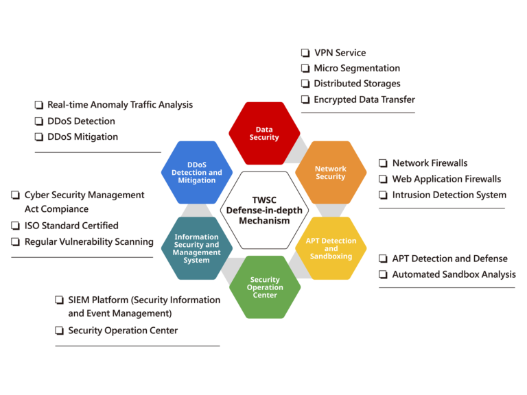 TWSC safeguards user data, models, and decision-making processes with a robust six-pillar security service. With protection at the management, physical security, and data levels, we offer a secure and reliable environment for users to build, run, and scale application development.