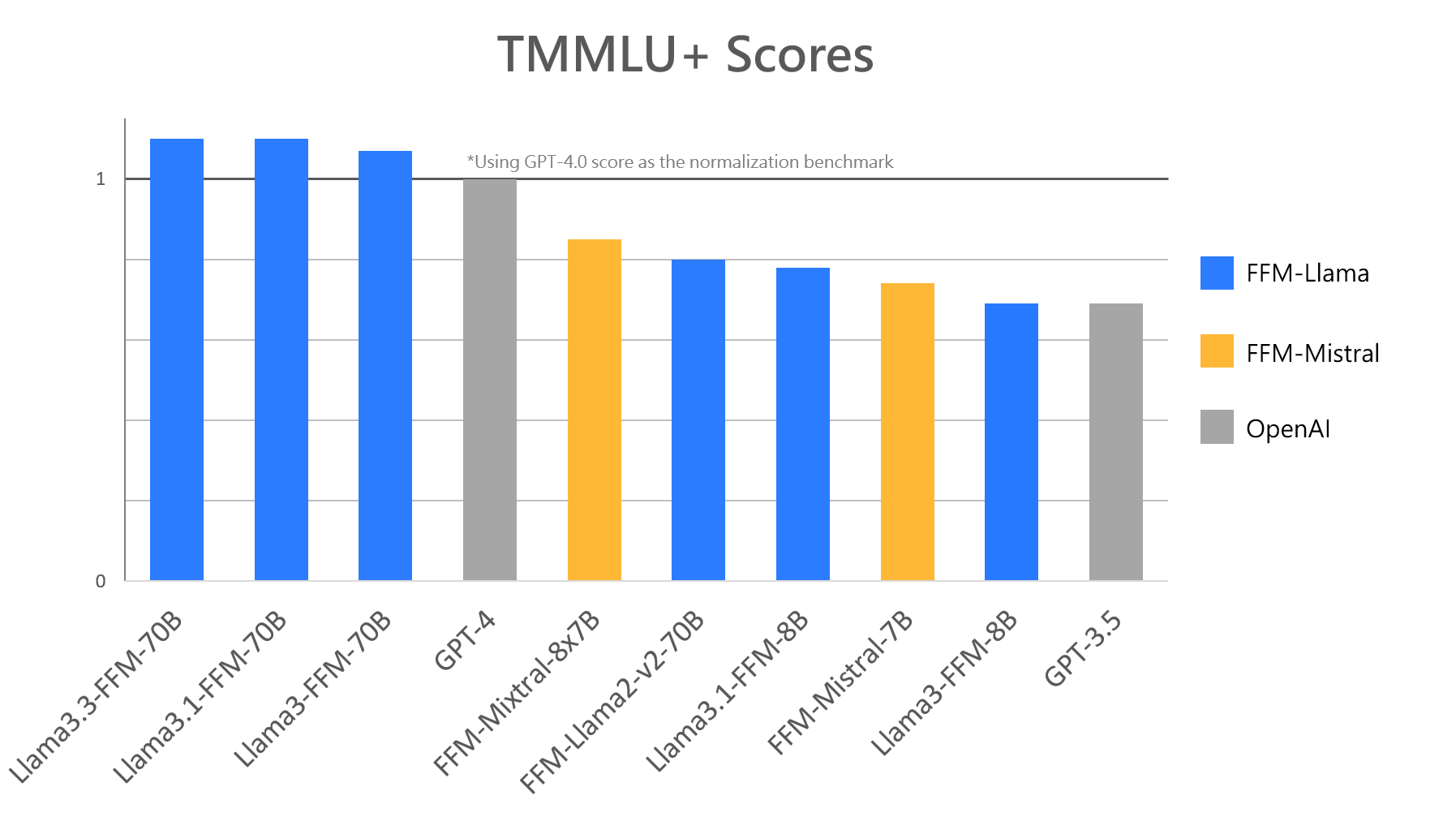 Llama 3.3-FFM's Traditional Chinese language capabilities surpass GPT 4.0.