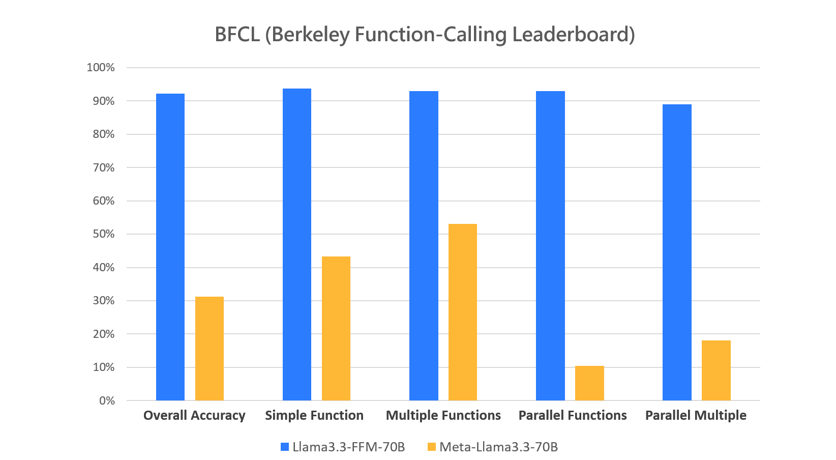Llama 3.3-FFM boasts excellent Traditional Chinese and foreign language capabilities, and comprehensively enhances its Tool Call capabilities, enabling simultaneous invocation of multiple external tools with significantly improved accuracy compared to the native model, helping enterprises build truly efficient AI Agents!