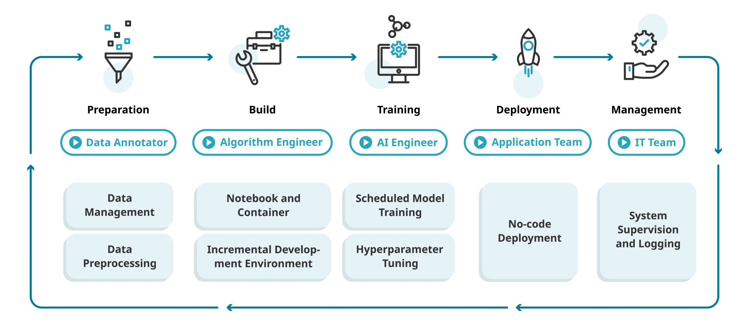 OneAI supports various roles in the AI Pipeline.