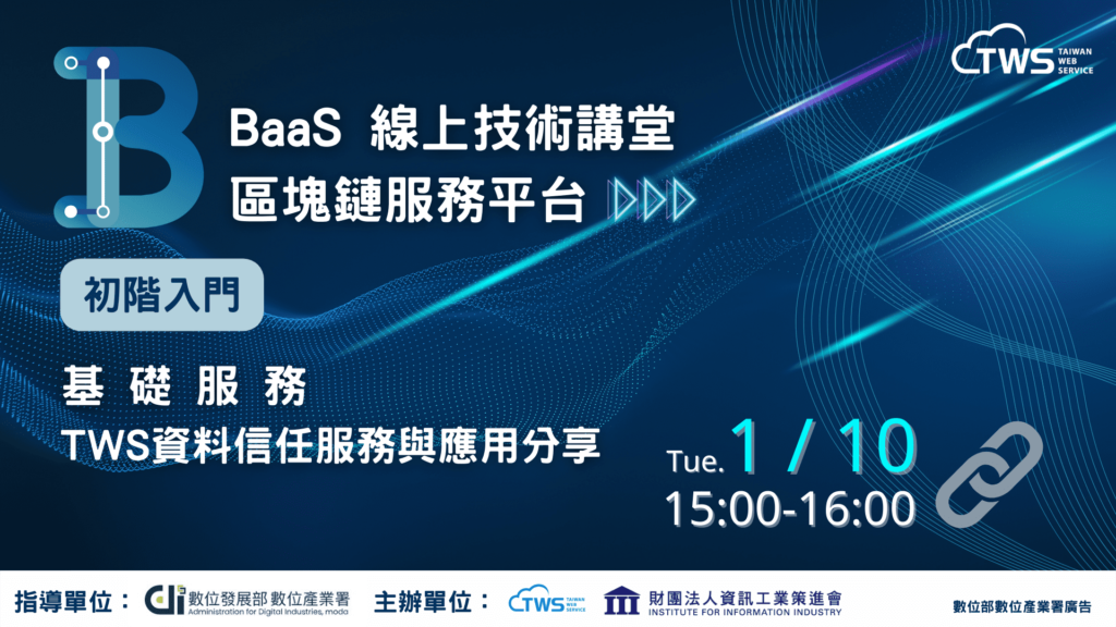 TWS BaaS 線上技術講堂,基礎服務 – TWS 資料信任服務與應用分享 閱讀全文 »