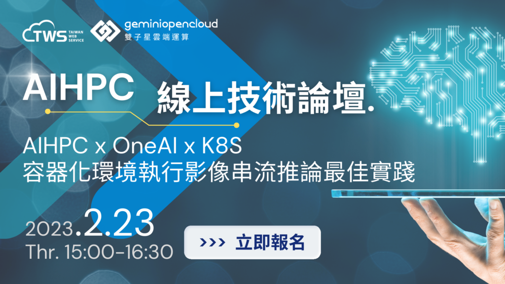 TWS AIHPC 線上技術論壇,AIHPC x OneAI x K8S 容器化環境執行影像串流推論最佳實踐 閱讀全文 »